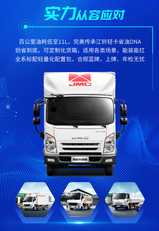 目前,江鈴輕卡騰豹2.5已經(jīng)在江鈴輕卡順威等系列車型進(jìn)行搭載,此次,搭載江鈴輕卡騰豹新一代2.5L發(fā)動(dòng)機(jī)4D25的輕卡車型,全系底盤(pán)采用了寶鋼高強(qiáng)度鋼結(jié)構(gòu),使車身的承載性能得到了更大的提升,可以拉更多的貨物了;同時(shí),可選擇多種貨箱尺寸組合,更是方便了卡友們不同的需求選擇;還有可定制化貨箱,更是滿足了不同場(chǎng)景的用車需求,正是卡友們城配運(yùn)輸?shù)目煽炕锇椤?/p>